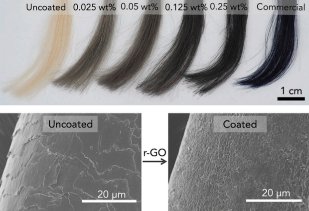 Исследователи создали из оксида графена темную краску для волос. Она равномерно покрывает волос и за счет этого окрашивает его в темный цвет и одновременно служит антистатиком.