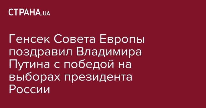 Генсек Совета Европы поздравил Владимира Путина с победой на выборах президента России