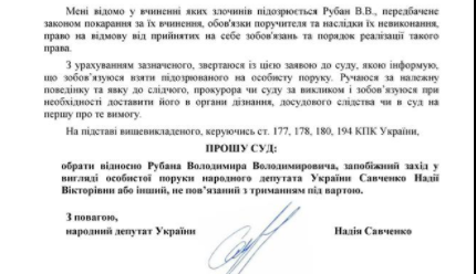 Суд сегодня рассмотрит апелляцию Рубана, Савченко берет его на поруки