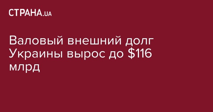 Валовой внешний долг Украины на 1 января 2018 года составлял 116,578 млрд долларов, что на 2,939 млрд долларов, или на 2,6% выше показателя годом ранее.