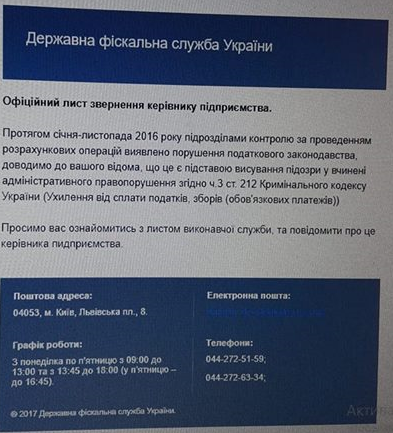 От псевдо-ГФС письма приходят с темой "Обращение руководителю предприятия" о том, что компания якобы уклонялась от уплаты налогов. От липового НАПК приходит опрос с темой "Уважаемый гражданин!". Письма присылают с обратными адресами в Японии r.oodaira@nishikawa-kogu.co.jp, product@vousetes.co.jp, mrc@x-make.sky-office.jp и пр.
