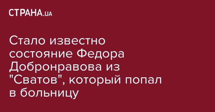 18 марта, актер Федор Добронравов, известный украинцам по запрещенному в Украине сериалу "Сваты", попал в больницу. Информацию подтвердила его представитель Ирина Сойкина.