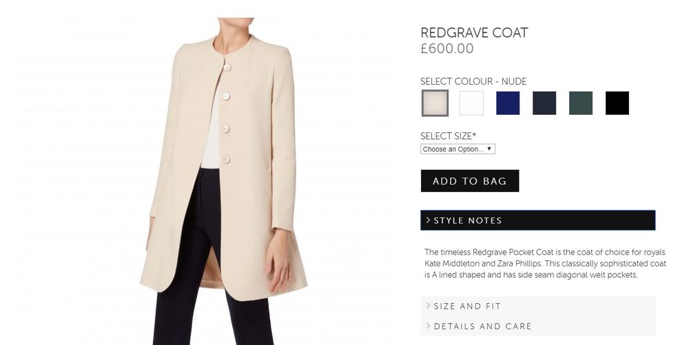 Будущая мама была в черных брюках, блузе в цветочек от Hobbs за 49 фунтов (1 820 грн), кремовом пальто Goat за 600 фунтов (22 287 грн) из обычных коллекций, а не для будущих мам. Образ дополнили классические черные туфли-лодочки.