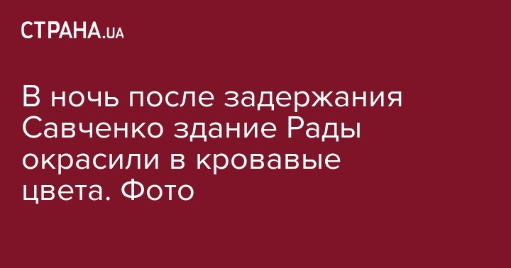 В ночь после задержания Надежды Савченко, которую сегодня могут арестовать, здание Верховной Рады окрасилось в красный цвет.