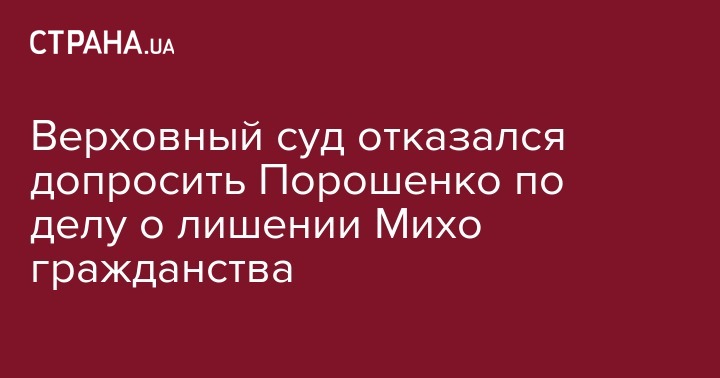 Кассационный административный суд Верховного суда отказался допросить президента Петра Порошенко и бывшего президента Грузии, бывшего губернатора Одесской области, лидера партии "Рух нових сил" Михаила Саакашвили по делу о законности прекращения его украинского гражданства. Об этом сказала председательствующая судья Раиса Ханова, сообщают Украинские Новости.