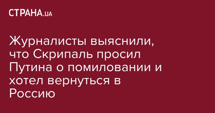 Журналисты выяснили, что Скрипаль просил Путина о помиловании и хотел вернуться в Россию