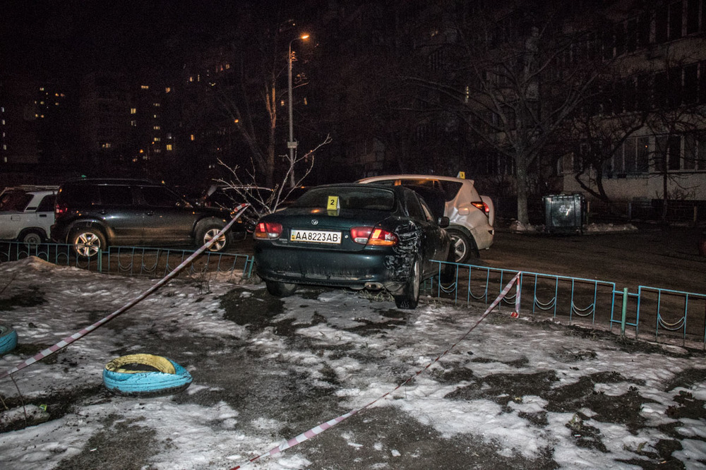 Два авто - Mazda и Mitsubishi Outlander- ехали по Оболонскому проспекту в сторону метро "Минская". По данным свидетелей, Mitsubishi Outlander подрезал легковушку и авто вылетело с дороги.