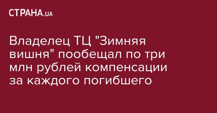 Владелец ТЦ "Зимняя вишня" пообещал по три млн рублей компенсации за каждого погибшего