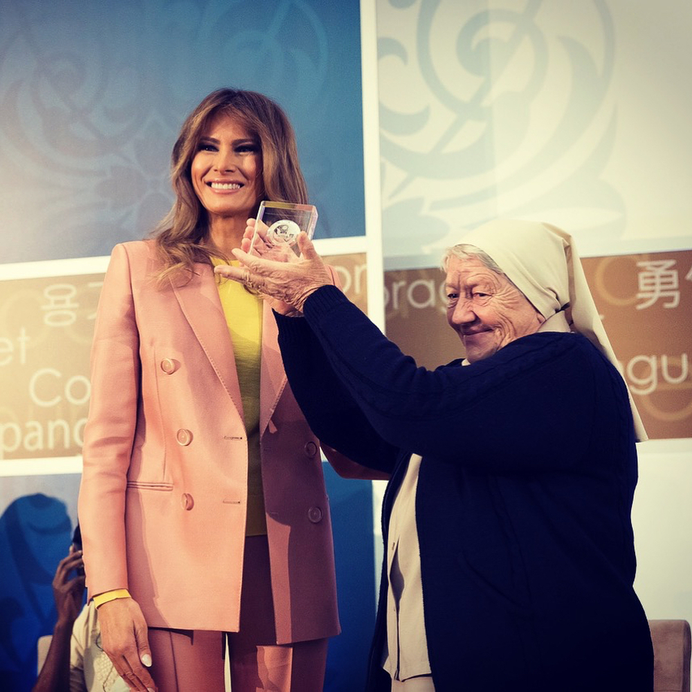 Первая леди США Мелания Трамп посетила церемонию международной премии Women of Courage Awards в строгом костюме итальянского бренда Emilio Pucci. Фото появились на странице Мелании Трамп в Instagram.