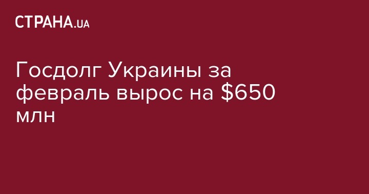 В феврале этого года совокупный государственный (прямой) и гарантированный государством долг Украины вырос на 0,85%, или на $0,65 млрд - до $76,76 млрд.