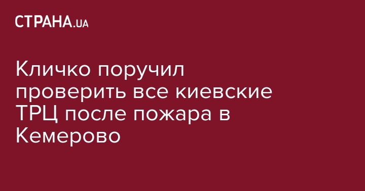 Мэр Киева Виталий Кличко поручил обследовать системы пожарной безопасности в торгово-развлекательных центрах, комплексах и других заведениях массового пребывания людей после трагедии в Кемерово, где погибли 64 человека. Об этом сообщает пресс-служба сайта КГГА.