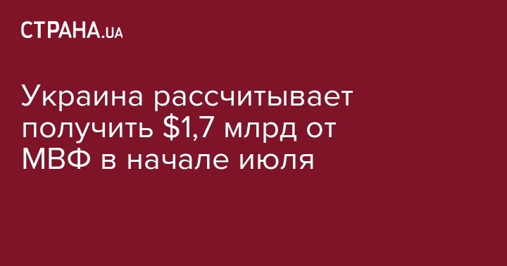 Украина рассчитывает получить $1,7 млрд от МВФ в начале июля