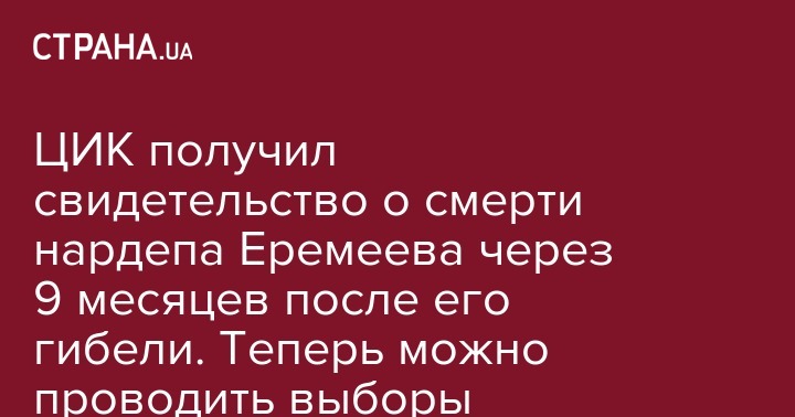 ЦИК получил свидетельство о смерти нардепа Еремеева через 9 месяцев после его гибели. Теперь можно проводить выборы