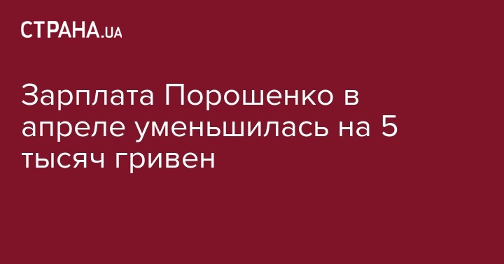 Зарплата Порошенко в апреле уменьшилась на 5 тысяч гривен