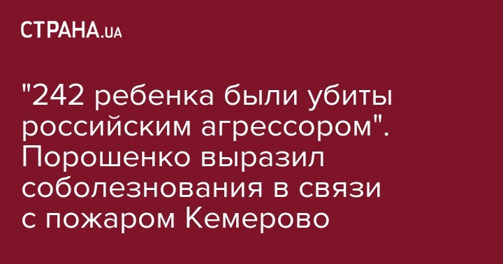 "242 ребенка были убиты российским агрессором, начиная с 2014 года. 140 сирийских детей погибло во время нападения на гражданское население в Сирии. Большое количество детей 25 марта погибло в Кемерово. Я хочу выразить самые искренние слова соболезнования родным и близким", - сказал Петр Порошенко о время встречи с участниками всеукраинской акции "Дети объединяют Украину".