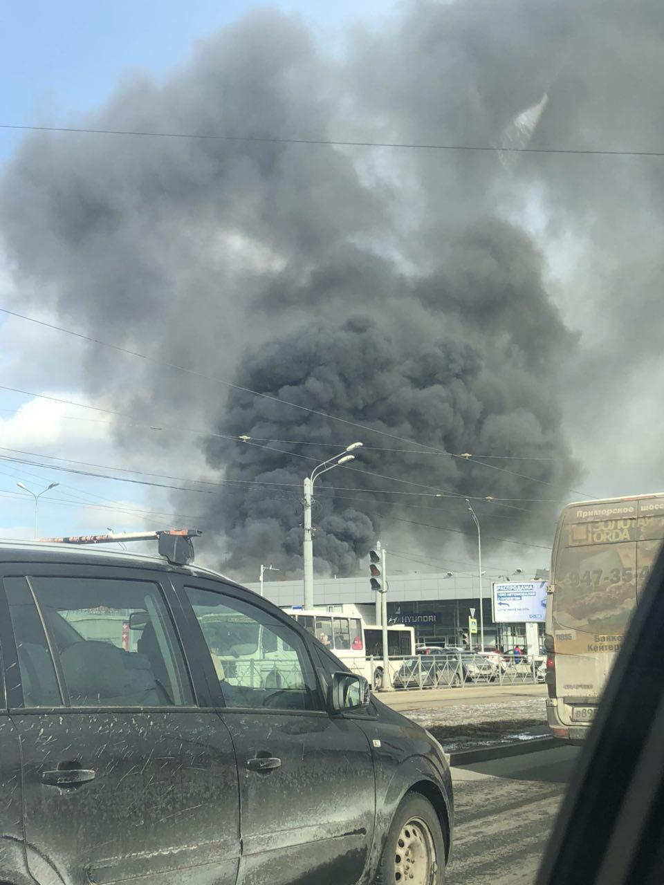 В ведомстве несколько раз подчеркнули, что горит не здание автоцентра. Однако, судя по фотографиям очевидцев, огонь распространился на крышу здания.