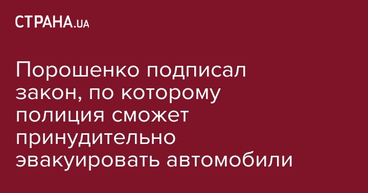 Президент Петр Порошенко подписал закон, который разрешает полиции эвакуировать припаркованные автомобили, препятствующие движению транспорта.