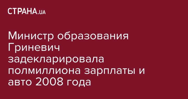 Министр образования Гриневич задекларировала полмиллиона зарплаты и авто 2008 года