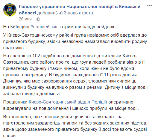 Под Киевом группа рейдеров ворвалась в частный дом и выбросила семью на улицу