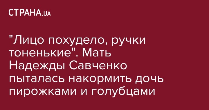 "Похудела, конечно. Лицо похудело, ручки такие тоненькие", - рассказала мать Савченко и добавила, что сегодня у нее день рождения, который стал худшим за ее 80 лет.