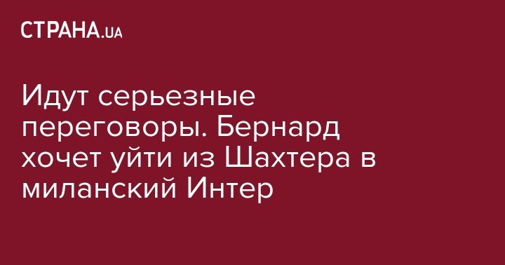 Этим летом истекает контракт у полузащитника Шахтера Бернарда, и он уйдет из команды. Одним из наиболее вероятных вариантов продолжения карьеры для Бернарда является итальянский Интер.