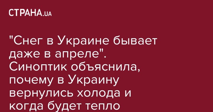 "Снег в Украине бывает даже в апреле". Синоптик объяснила, почему в Украину вернулись холода и когда будет тепло
