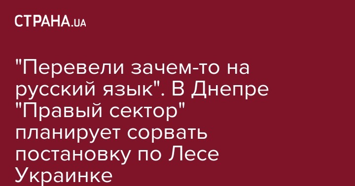 Националистическая организация "Правый сектор" намерена помешать театральной постановке пьесы "Лесная песня" по Лесе Украинке, которую 11 апреля покажет Днепровский академический театр драмы и комедии.
