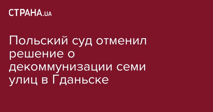 Польский административный суд отменил решение о переименовании семи улиц в Гданьске в связи с декоммунизацией. Об этом сообщается в Twitter города.