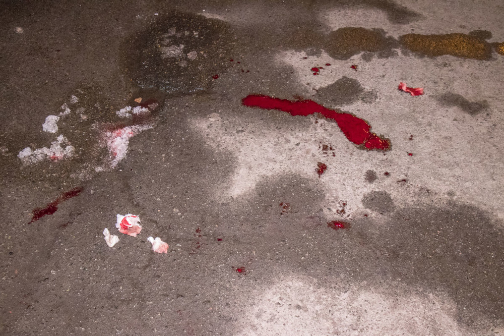 Жена владельца Range Rover не спала и увидела, что горит машина. Мужчина выбежал тушить автомобиль. Он заливал автомобиль водой и засыпал огонь снегом. В этот момент произошел взрыв. Хозяину машины посекло ноги осколками. Его госпитализировали медики. Во дворе на асфальте большая лужа крови. Кроме этого, следы осколков остались и на рядом припаркованных автомобилях.