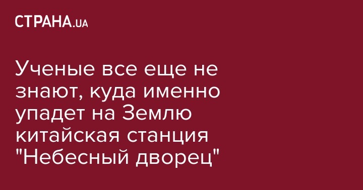Ученые все еще не знают, куда именно упадет на Землю китайская станция "Небесный дворец"