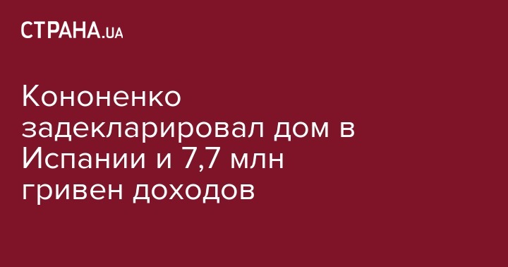 Заместитель главы фракции "Блок Петра Порошенко" Игорь Кононенко отобразил в электронной декларации за 2017 год арендованный дом в Испании, а доход народного депутата превысил 7,7 млн грн. Об этом говорится в данных поданной им е-декларации за прошлый год.