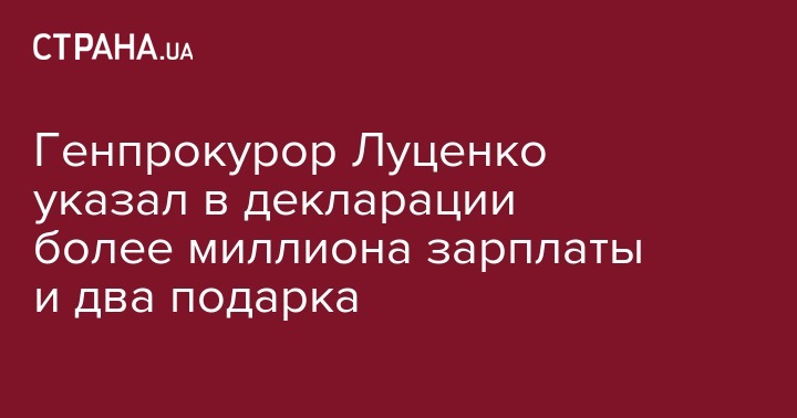 Кроме того, в прошлом году Генпрокурор получил два подарка в неденежной форме, общая стоимость которых оценивается в 289 тысяч 300 гривен.