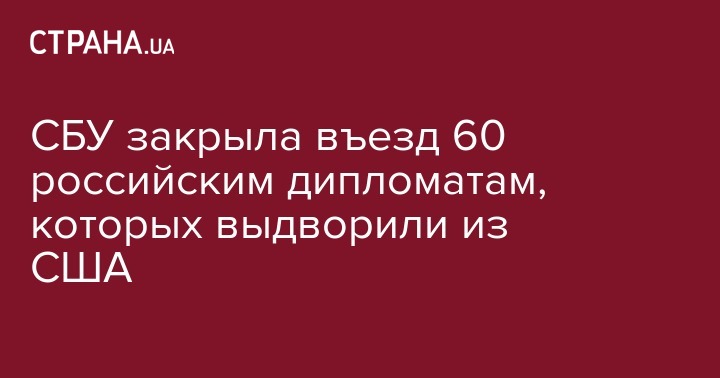 Служба безопасности Украины закрыла въезд в Украину 60 гражданам России, которые были выдворены из Соединенных Штатов Америки за причастность к деятельности спецслужб России, их деятельность признана несовместимой со статусом дипломата.