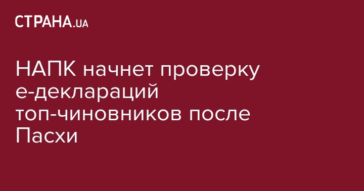 Национальное агентство по предотвращению коррупции (НАПК) намерено 10 апреля начать полную проверку электронных деклараций топ-чиновников за 2017 год.