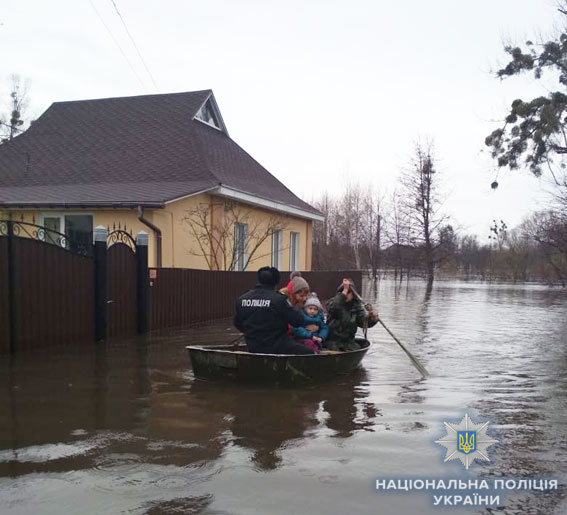 На Сумщине, в городе Ахтырка, сотрудники полиции пересели в лодки и спасают местное население из затопленных весенним паводком домов.