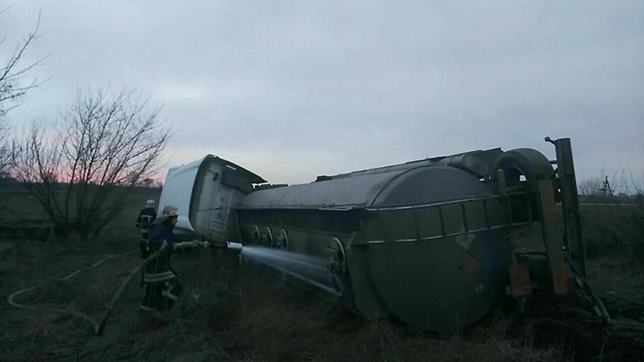 По данным спасателей, цистерна, в которой перевозилось в Киев 15 тонн дизтоплива и 15 тонн бензина АИ-92, не разгерметизировалась, однако произошла утечка дизтоплива и бензина из предохранительных клапанов.