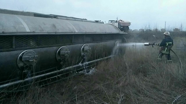 "Чтобы предотвратить взрыв, сотрудники ГСЧС обеспечили дежурство на месте происшествия, провели охлаждение цистерны и покрыли разлитое горючее пеной. От ГУ ГСЧС были задействованы 16 человек личного состава и 4 единицы спецтехники", - сообщили в пресс-службе.