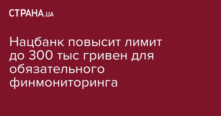 Национальный банк Украины (НБУ) намерен вдвое, со 150 тыс. грн до 300 тыс. грн. увеличить лимит финансовых операций, необходимых для финансового мониторинга операций.