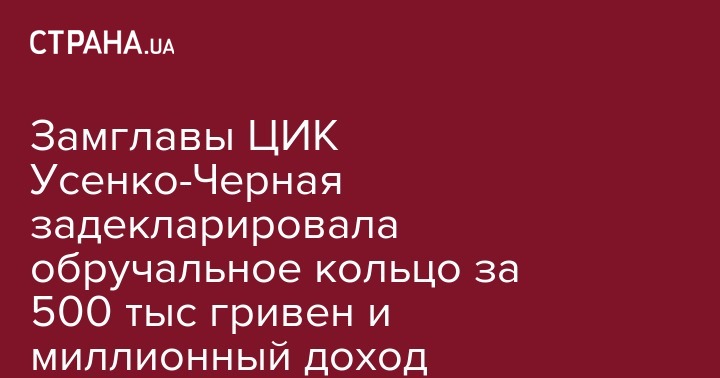 Замглавы ЦИК Усенко-Черная задекларировала обручальное кольцо за 500 тыс гривен и миллионный доход