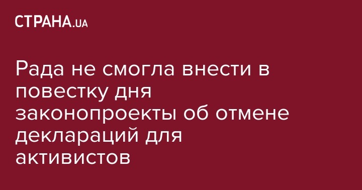 Рада не смогла внести в повестку дня законопроекты об отмене деклараций для активистов