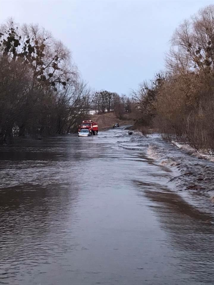 "Пожалуйста, репост всем, кто едет с Киева в Сумы или с Сум в Киев. Для легковушек проехать невозможно, течёт река, сильный поток. Время фиксации 19:30, 01.04.2018. Это не шутка! Планируете поездку, меняйте маршрут, эта река не доезжая Лохвицы со стороны Киева", - написал он.