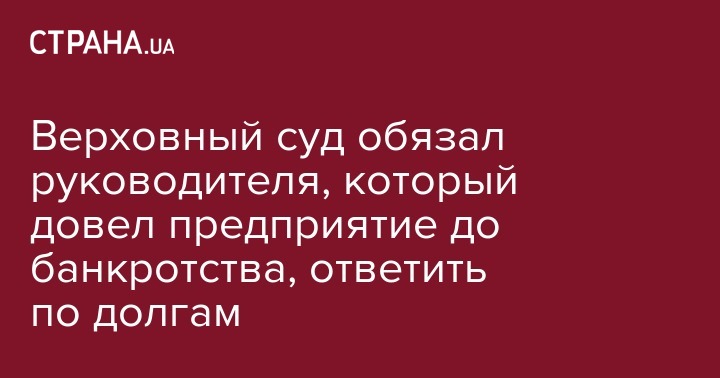 Верховный суд Украины решил, что руководитель, обанкротивший предприятие, отвечает субсидиарно (дополнительно) по обязательствам предприятия.