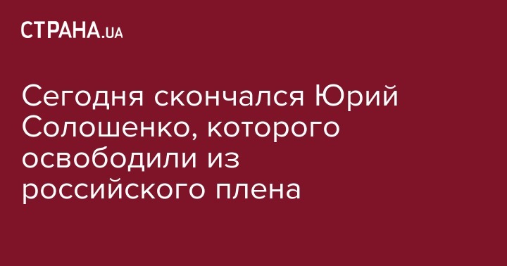 Сегодня, 4 апреля, около 08.00, скончался освобожденный из российского плена бывший украинский политзаключенный Юрий Солошенко. Он вернулся домой вместе с Геннадием Афанасьевым после обмена на обвиняемых в сепаратизме россиян Евгения Мефедова и Максима Сакауова.