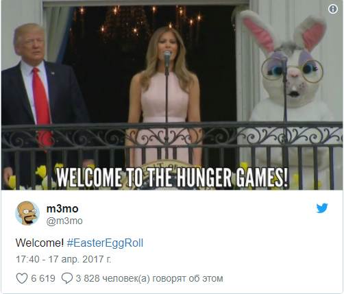 В традиционной программе были и соревнования по катанию яиц, чтение Меланией Трамп сказки для малышей в саду, торжественный парад и поздравительная речь президента с балкона рядом с гигантским пасхальным кроликом.