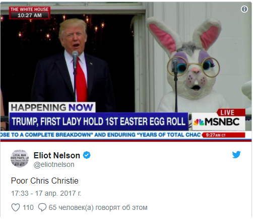 Стоит отметить, что с пасхальный плюшевым кроликом семья Трампов встречала Пасху и в прошлом году. После появления фото, кролик стал главным героем мемов интернет-пользователей. В основном люди интересовались, кто же решился примерить костюм: пресс-секретарь Белого дома Шон Спайсер или бывший Вице-президент США Джо Байден, который соскучился по резиденции президента.