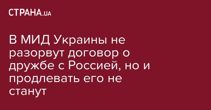 МИД Украины не планирует разрывать Договор о дружбе, сотрудничестве и партнерстве между Украиной и Россией, но и не будет его продлевать.