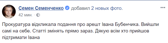 Напомним, группа следователя по делам Майдана Сергея Горбатюка пыталась вменить Бубенчику убийство, но Луценко, после поднявшейся волны неодобрения со стороны национал-патриотов, решил поменять статью.