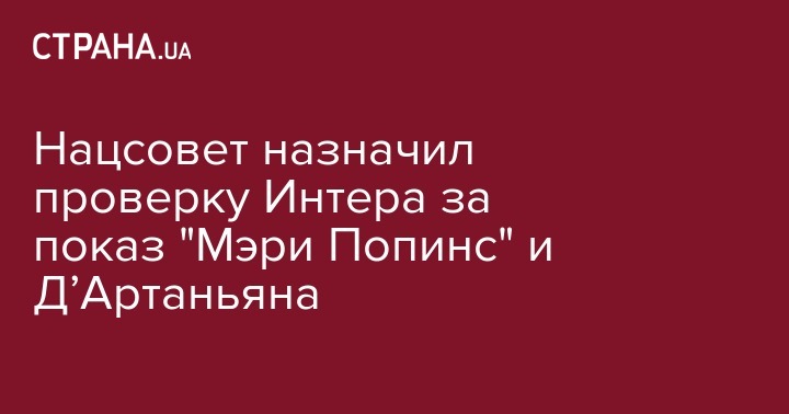 "В эфире телеканала "Интер" демонстрировались фильмы "Свой среди чужих, чужой среди своих" - режиссер Никита Михалков (23 и 24 февраля), "Офицеры" - с участием Василия Ланового (24 февраля), "Афоня" - с участием Валентины Талызиной (3 и 4 марта), "Гараж" - с участием Валентина Гафта (3 и 5 марта), "Любовь и голуби" - с участием Александра Михайлова, режиссер Владимир Меньшов (8 и 9 марта), "Москва слезам не верит" - с участием Олега Табакова, режиссер Владимир Меньшов (8 и 10 марта), "Мэри Поппинс, до свидания" - с участием Олега Табакова (17 и 18 марта) и "Д'Артаньян и три мушкетера" - с участием Михаила Боярского, Олега Табакова, Бориса Клюева и Алисы Фрейндлих (17 и 19 марта)", - уточняет Нацсовет.