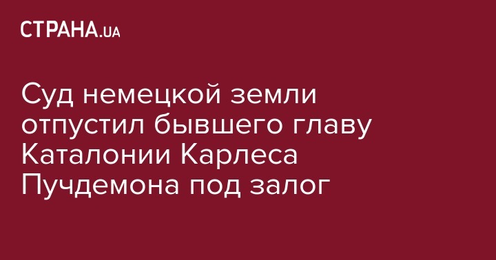 Суд немецкой земли Шлезвиг-Гольштейн освободил под залог экс-главу Женералитата Каталонии Карлеса Пучдемона. Об этом в четверг, 5 апреля сообщает агентство ЭФЭ.