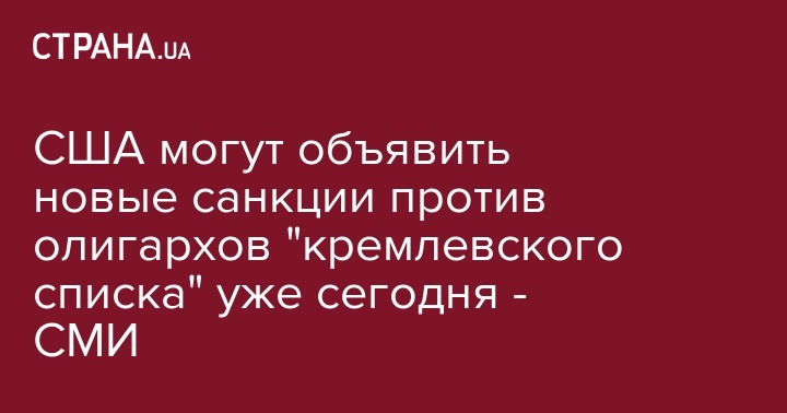 США могут объявить новые санкции против олигархов "кремлевского списка" уже сегодня - СМИ